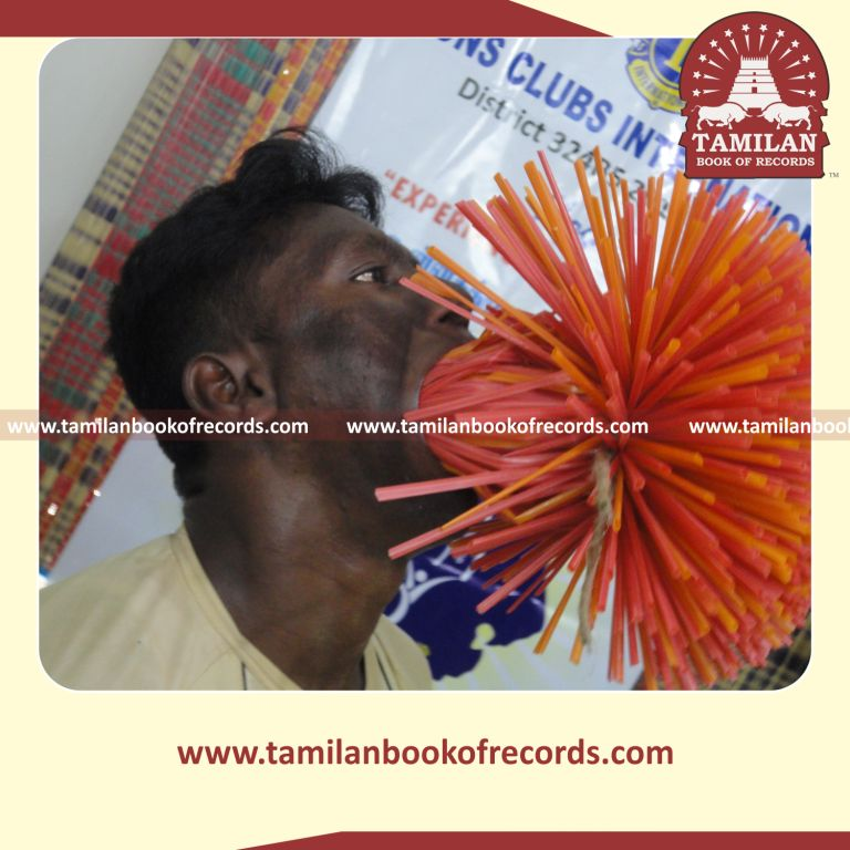 Greatest Number of Straws Stuffed in a Mouth by an Individual (Male)