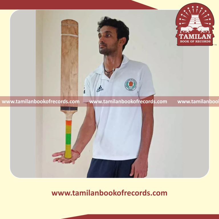 Longest Duration to Balance Cricket Bat From Handle on The Palm of Hand Teenager