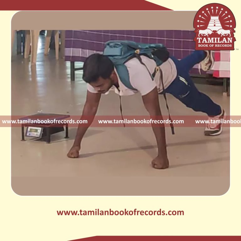Greatest Number of Knuckle Push-Ups with One Leg Raised While Carrying a 12445 grams Backpack by an Individual (Male)