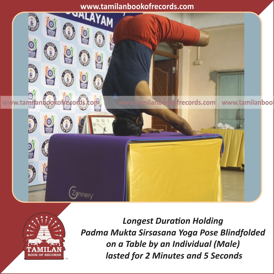 Longest Duration Holding Padma Mukta Sirsasana Yoga Pose Blindfolded on a Table by an Individual (Male)