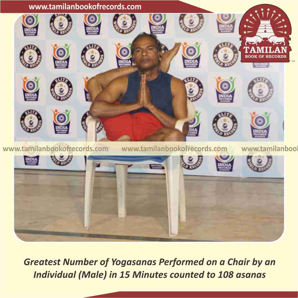 Greatest Number of Yogasanas Performed on a Chair by an Individual (Male) in 15 Minutes