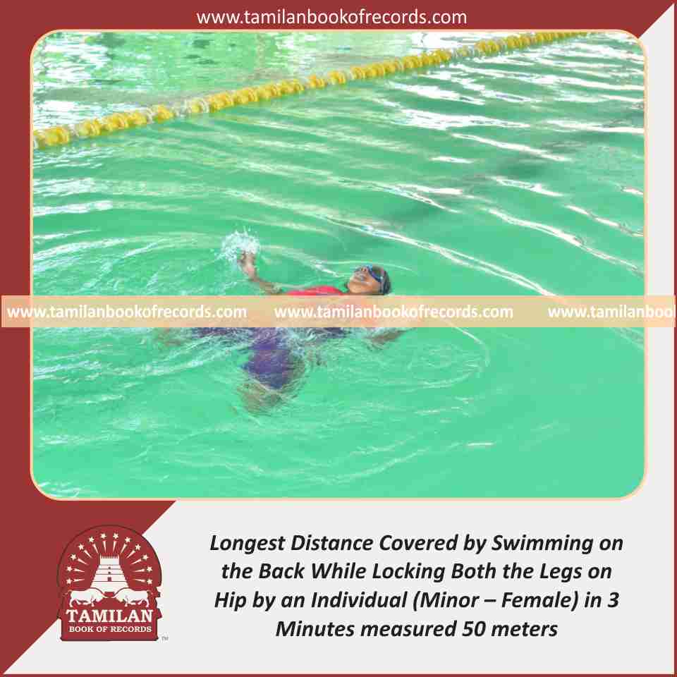 Longest Distance Covered by Swimming on the Back While Locking Both the Legs on Hip by an Individual (Minor – Female) in 3 Minutes