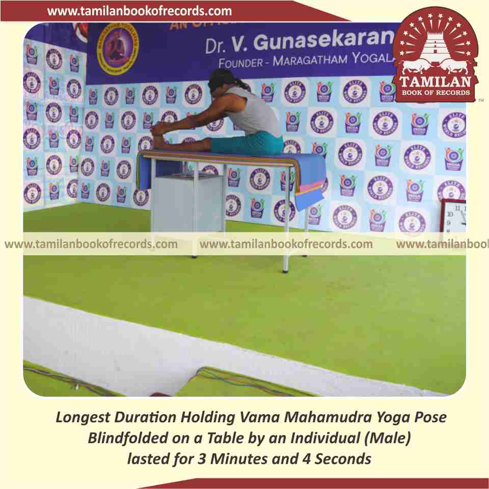 Longest Duration Holding Vama Mahamudra Yoga Pose Blindfolded on a Table by an Individual (Male)