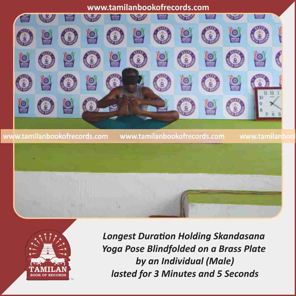 Longest Duration Holding Skandasana Yoga Pose Blindfolded on a Brass Plate by an Individual (Male)