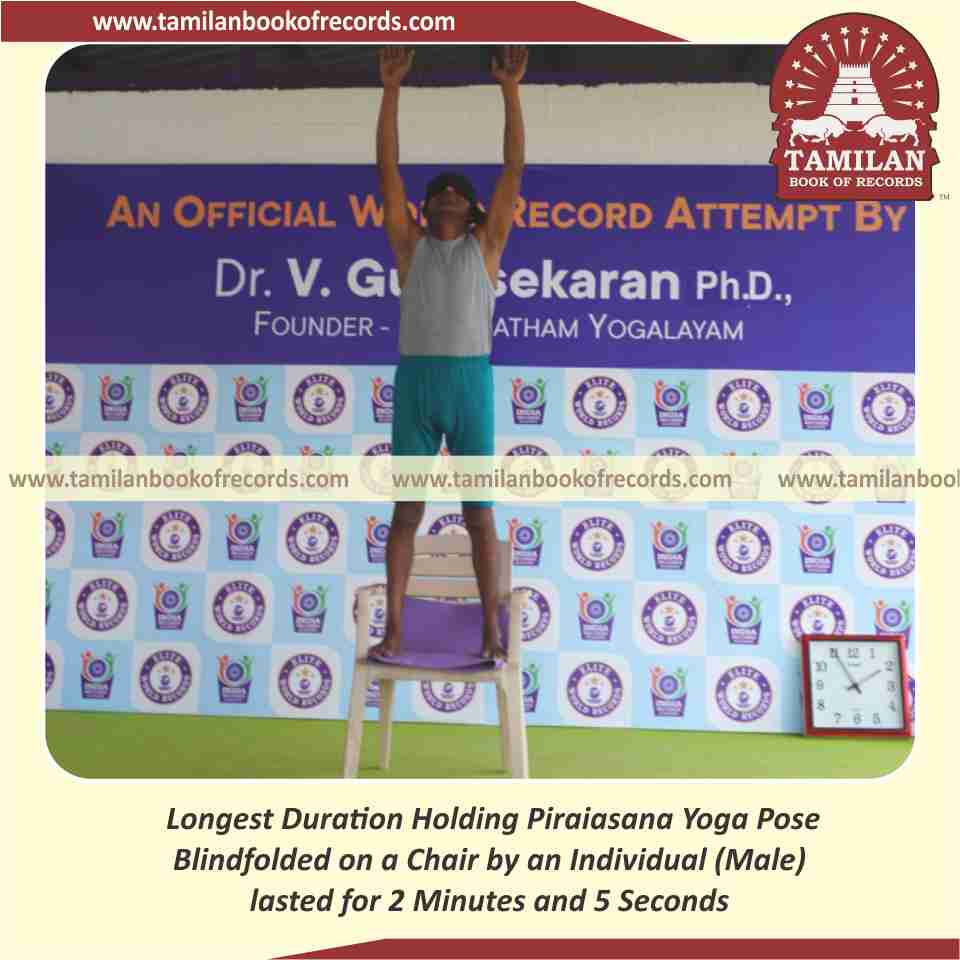 Longest Duration Holding Piraiasana Yoga Pose Blindfolded on a Chair by an Individual (Male)