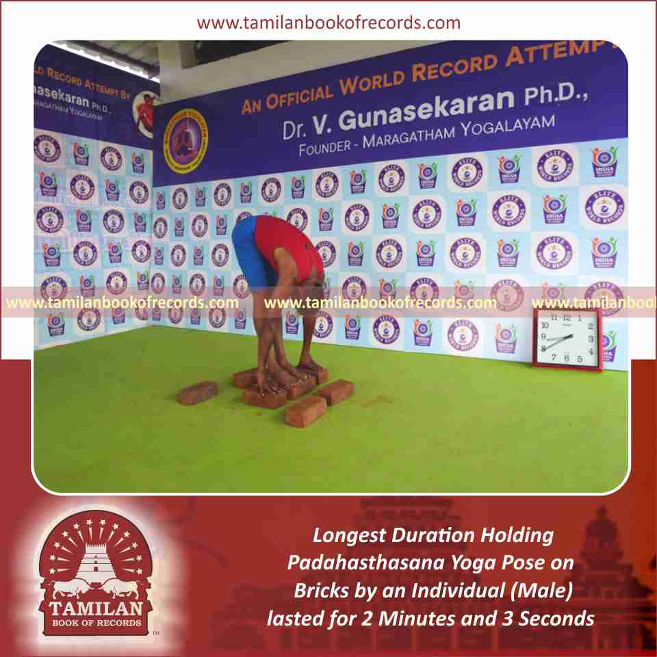 Longest Duration Holding Padahasthasana Yoga Pose on Bricks by an Individual (Male)