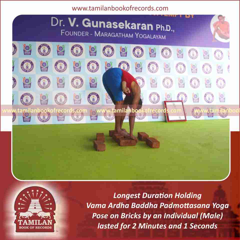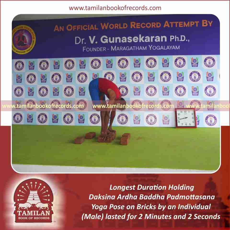 Longest Duration Holding Daksina Ardha Baddha Padmottasana Yoga Pose on Bricks by an Individual (Male)