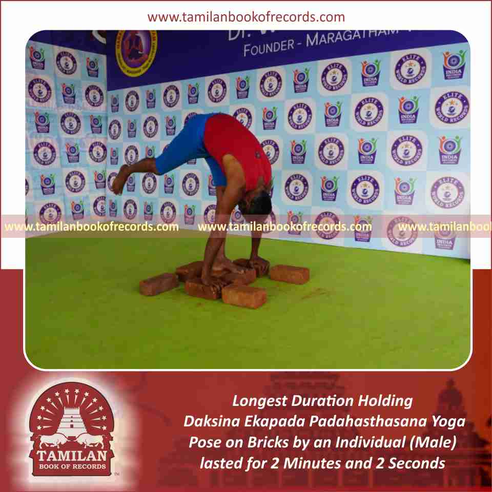 Longest Duration Holding Daksina Ekapada Padahasthasana Yoga Pose on Bricks by an Individual (Male)