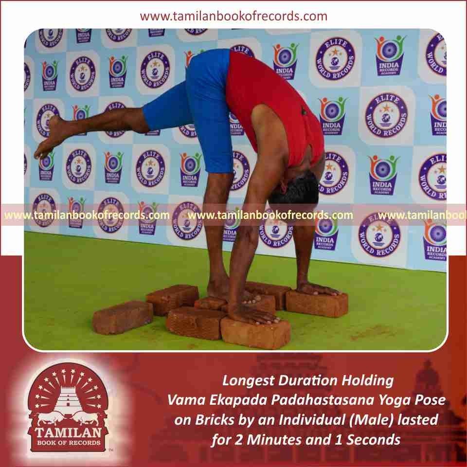 Longest Duration Holding Vama Ekapada Padahastasana Yoga Pose on Bricks by an Individual (Male)