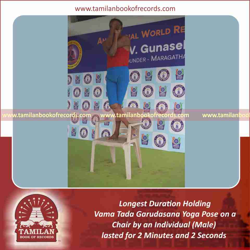Longest Duration Holding Vama Tada Garudasana Yoga Pose on a Chair by an Individual (Male)