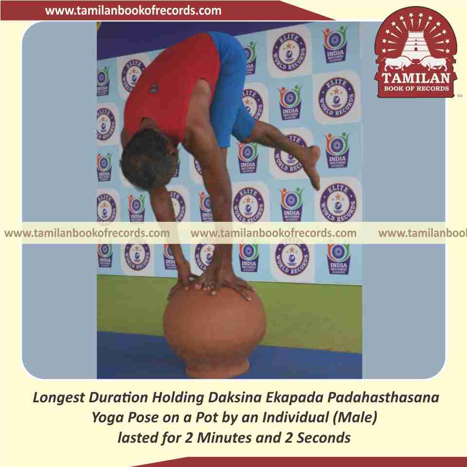 Longest Duration Holding Daksina Ekapada Padahasthasana Yoga Pose on a Pot by an Individual (Male)