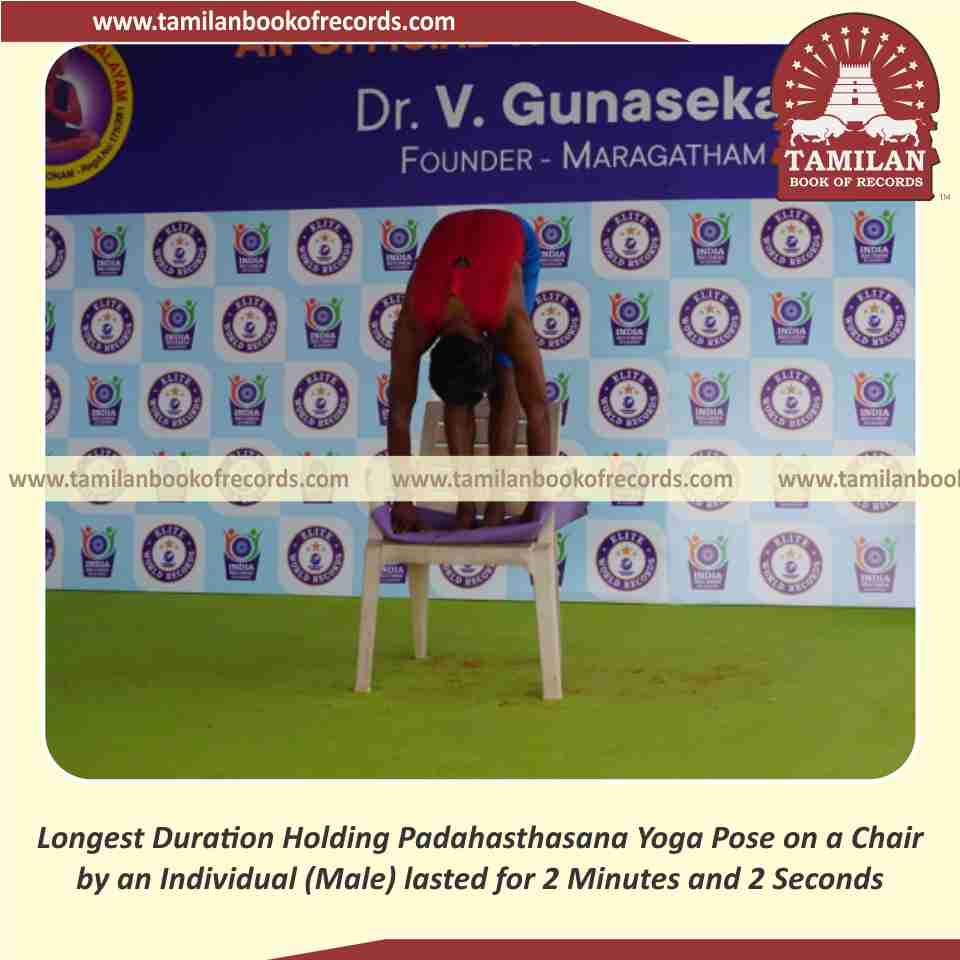 Longest Duration Holding Padahasthasana Yoga Pose on a Chair by an Individual (Male)