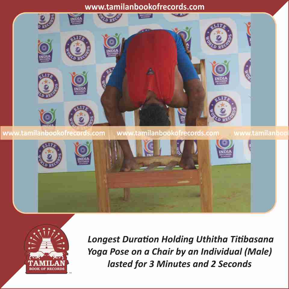Longest Duration Holding Uthitha Titibasana Yoga Pose on a Chair by an Individual (Male)