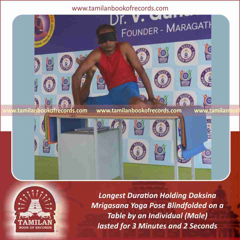 Longest Duration Holding Daksina Mrigasana Yoga Pose Blindfolded on a Table by an Individual (Male)
