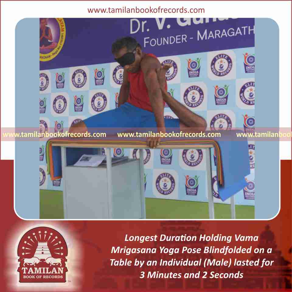Longest Duration Holding Vama Mrigasana Yoga Pose Blindfolded on a Table by an Individual (Male)