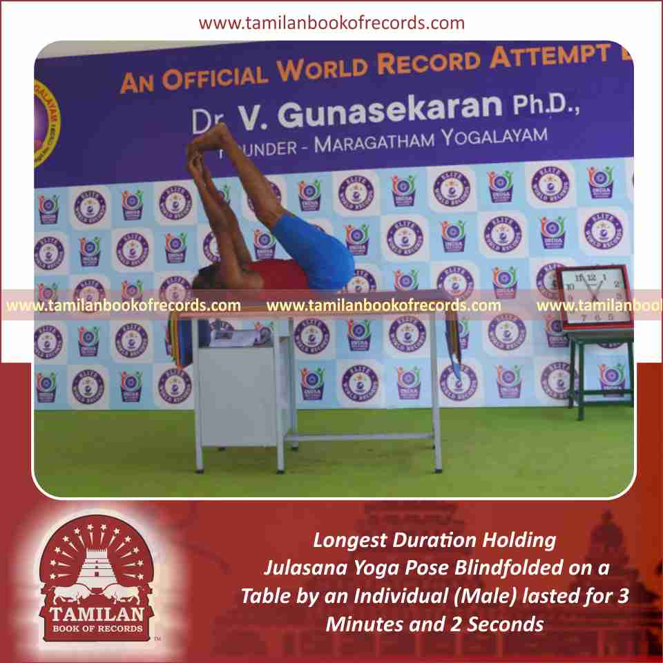Longest Duration Holding Julasana Yoga Pose Blindfolded on a Table by an Individual (Male)