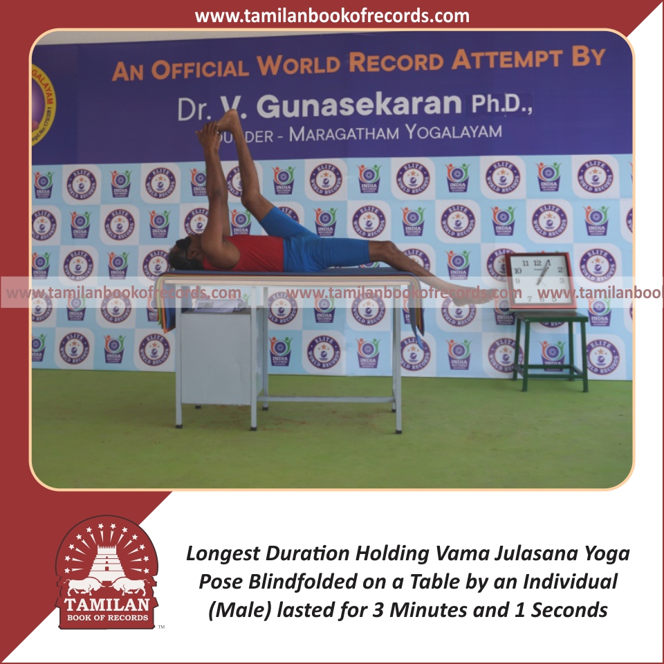 Longest Duration Holding Daksina Julasana Yoga Pose Blindfolded on a Table by an Individual (Male)