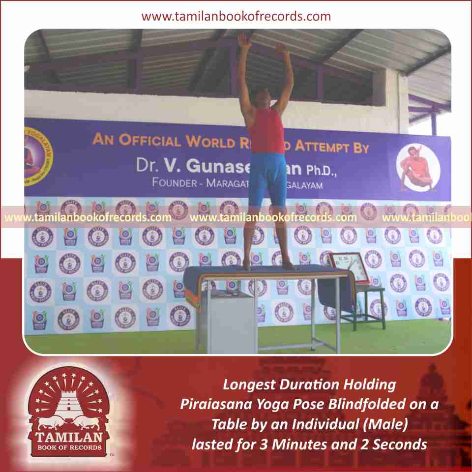 Longest Duration Holding Vama Julasana Yoga Pose Blindfolded on a Table by an Individual (Male)
