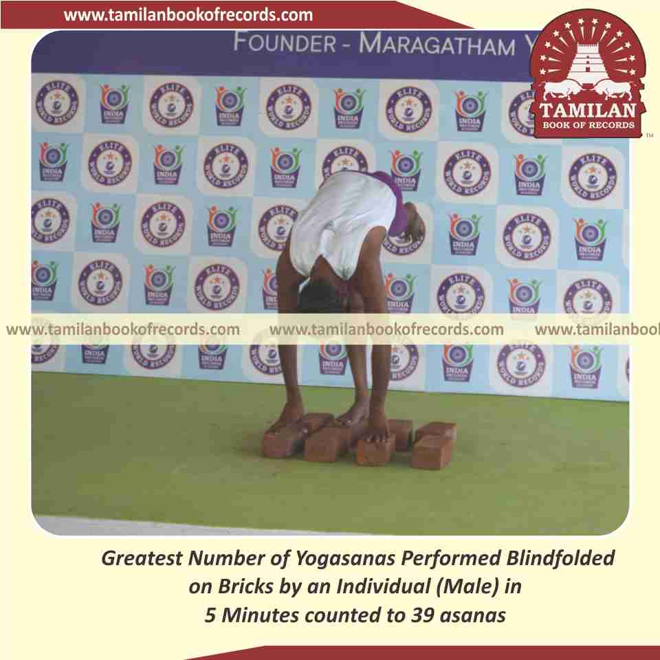 Greatest Number of Yogasanas Performed Blindfolded on Bricks by an Individual (Male) in 5 Minutes