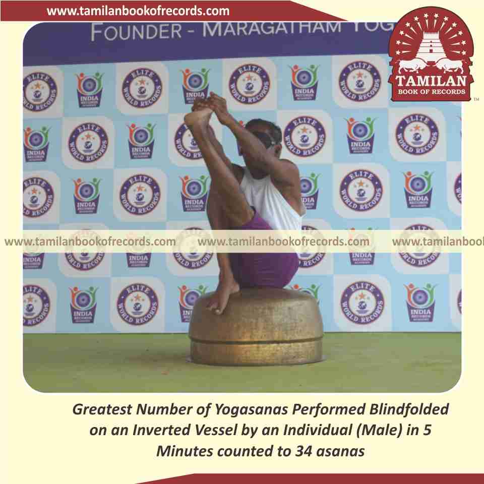 Greatest Number of Yogasanas Performed Blindfolded on an Inverted Vessel by an Individual (Male) in 5 Minutes