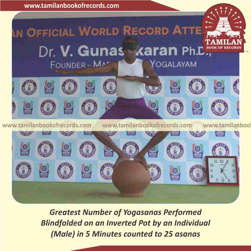 Greatest Number of Yogasanas Performed Blindfolded on an Inverted Pot by an Individual (Male) in 5 Minutes