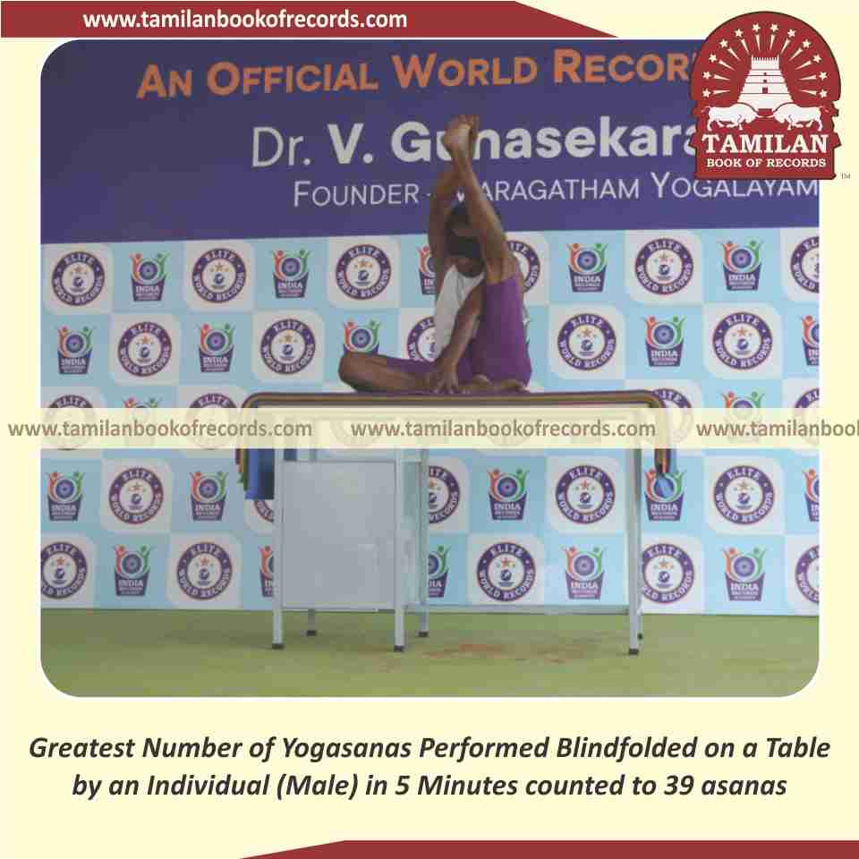 Greatest Number of Yogasanas Performed Blindfolded on a Table by an Individual (Male) in 5 Minutes