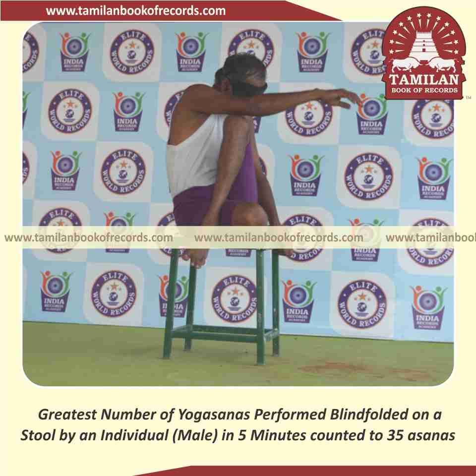 Greatest Number of Yogasanas Performed Blindfolded on a Stool by an Individual (Male) in 5 Minutes