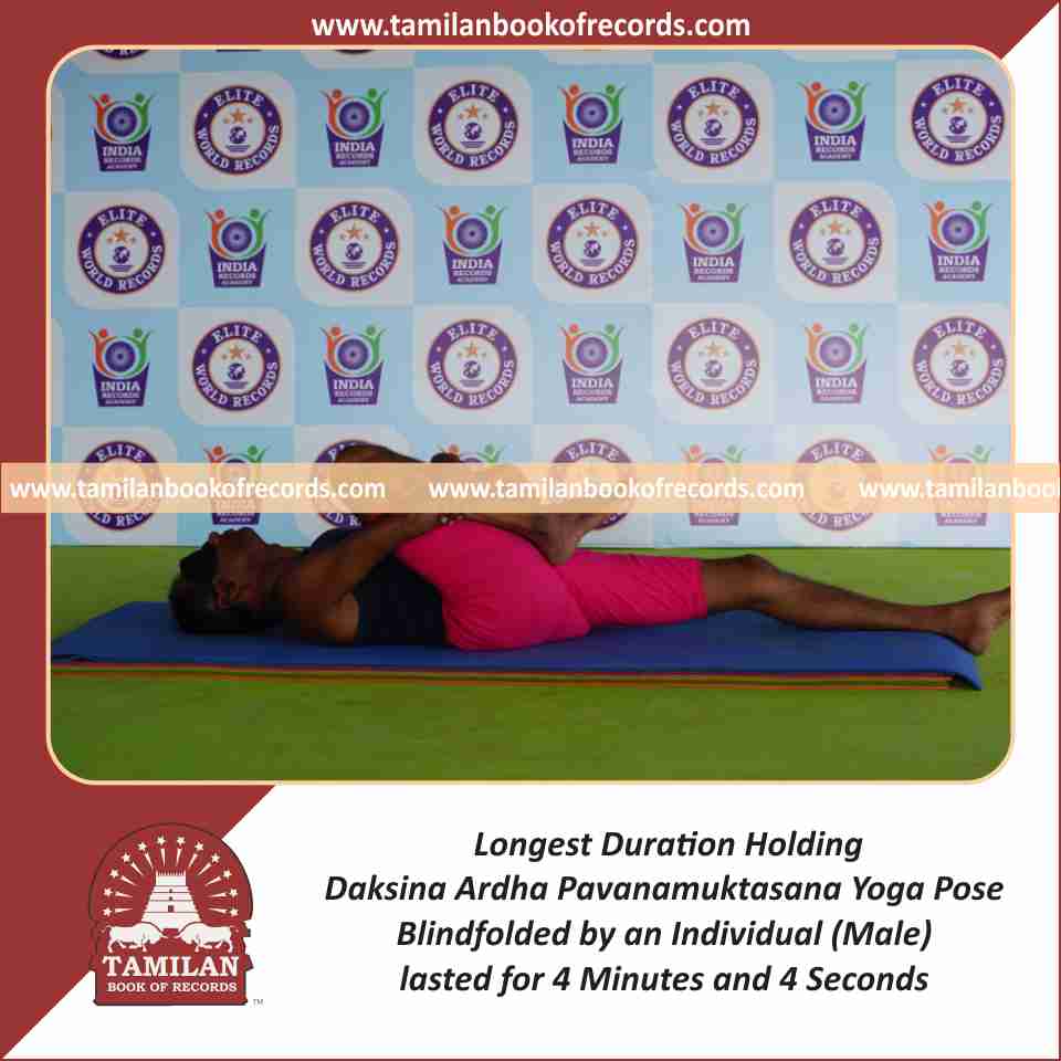 Longest Duration Holding Daksina Ardha Pavanamuktasana Yoga Pose Blindfolded by an Individual (Male)
