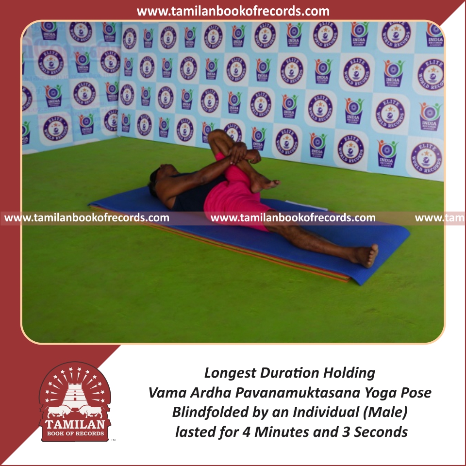 Longest Duration Holding Vama Ardha Pavanamuktasana Yoga Pose Blindfolded by an Individual (Male)