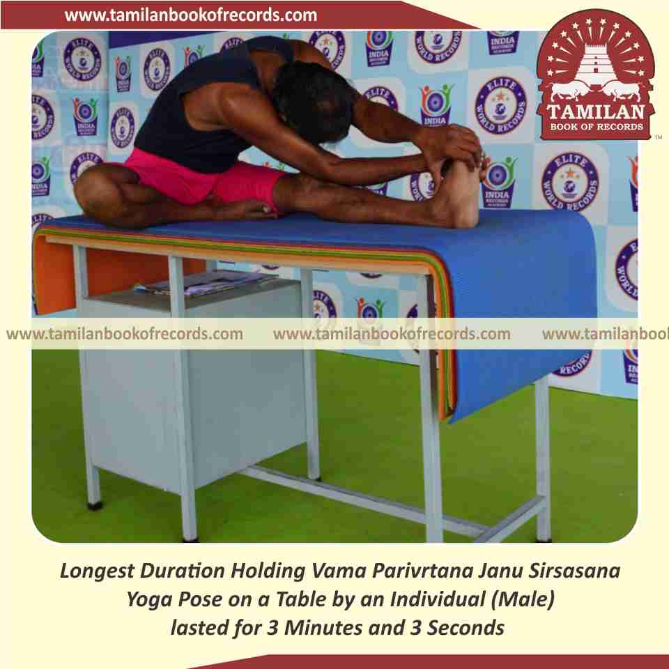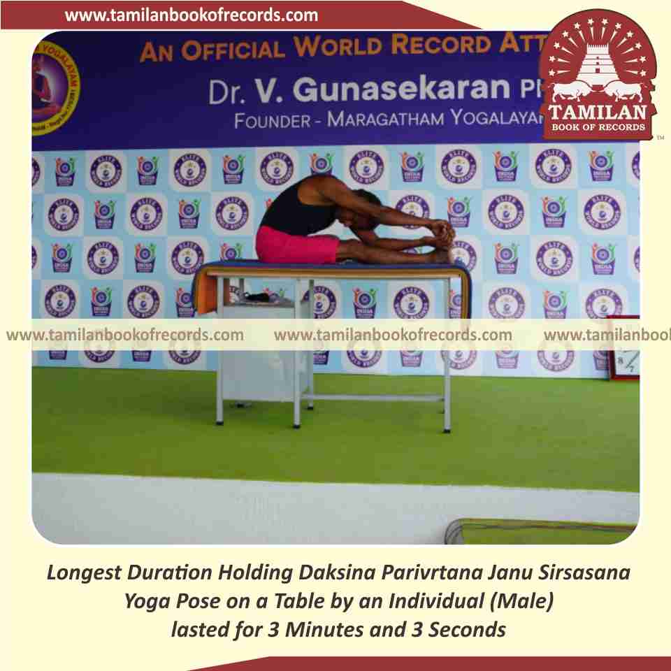 Longest Duration Holding Daksina Parivrtana Janu Sirsasana Yoga Pose on a Table by an Individual (Male)