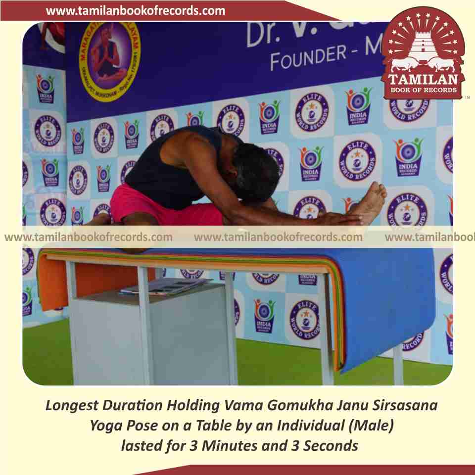 Longest Duration Holding Vama Gomukha Janu Sirsasana Yoga Pose on a Table by an Individual (Male)