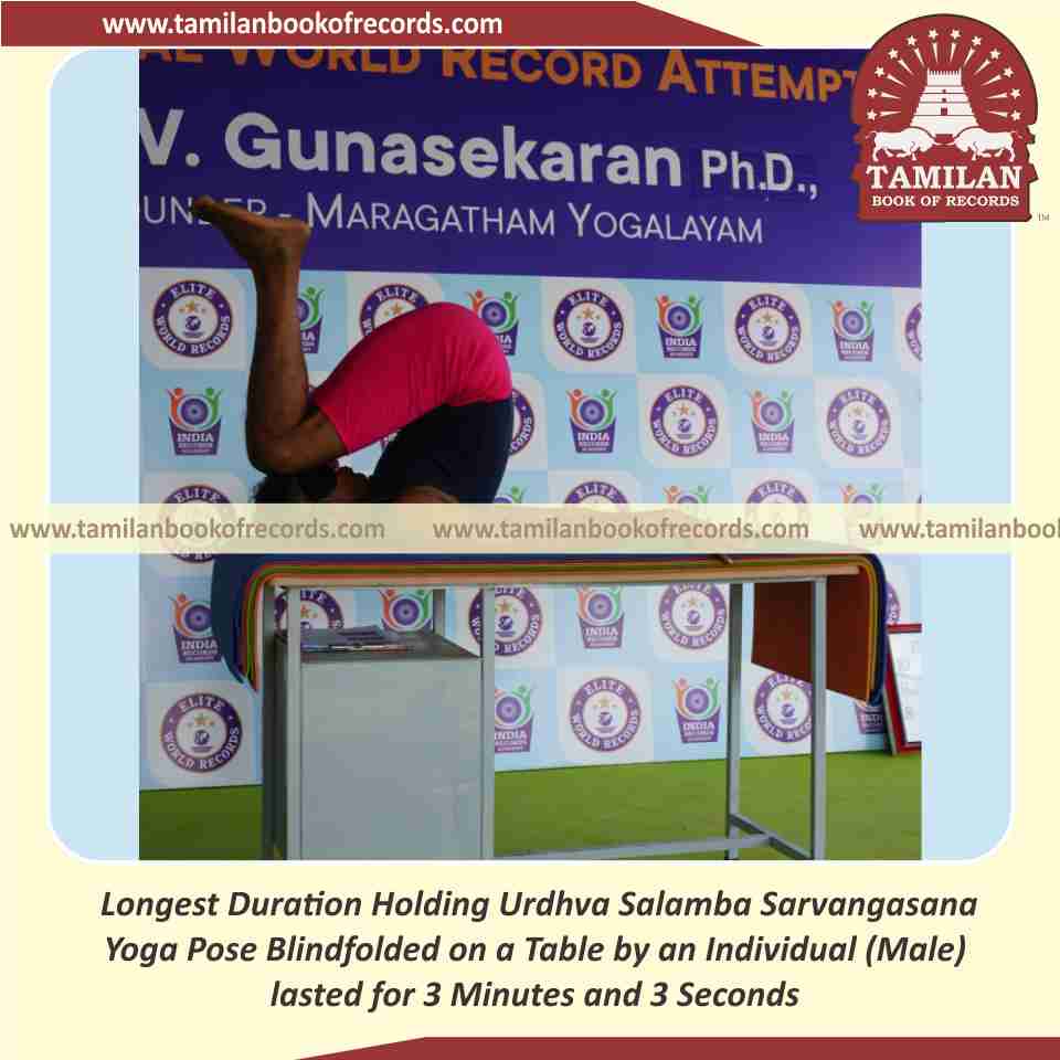 Longest Duration Holding Urdhva Salamba Sarvangasana Yoga Pose Blindfolded on a Table by an Individual (Male)