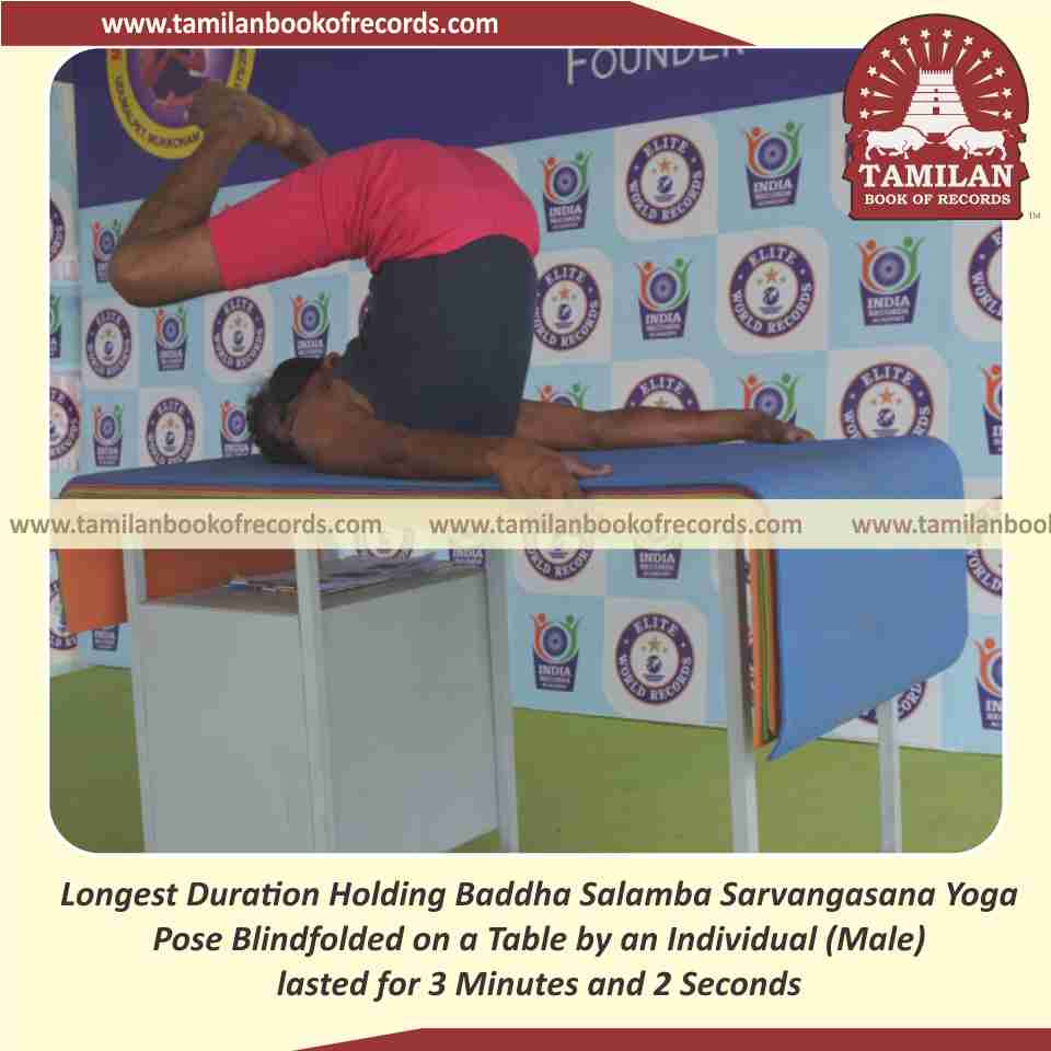 Longest Duration Holding Baddha Salamba Sarvangasana Yoga Pose Blindfolded on a Table by an Individual (Male)