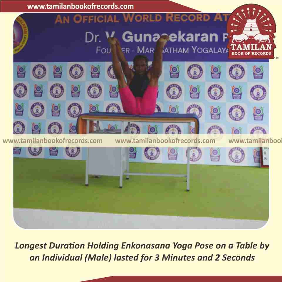 Longest Duration Holding Enkonasana Yoga Pose on a Table by an Individual (Male)