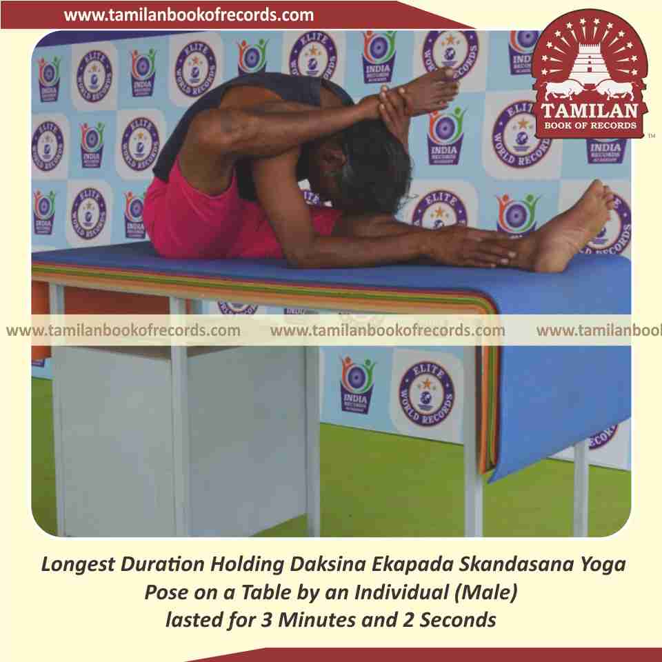Longest Duration Holding Daksina Ekapada Skandasana Yoga Pose on a Table by an Individual (Male)