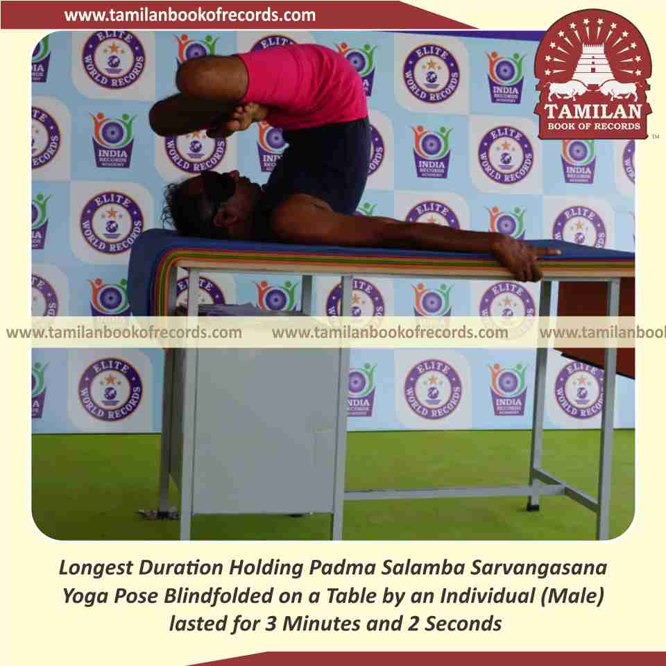 Longest Duration Holding Padma Salamba Sarvangasana Yoga Pose Blindfolded on a Table by an Individual (Male)