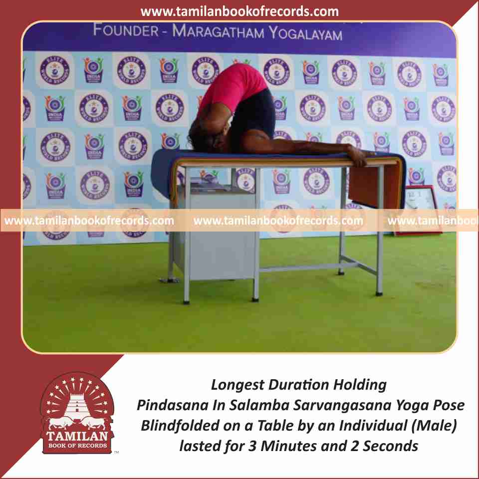 Longest Duration Holding Pindasana In Salamba Sarvangasana Yoga Pose Blindfolded on a Table by an Individual (Male)