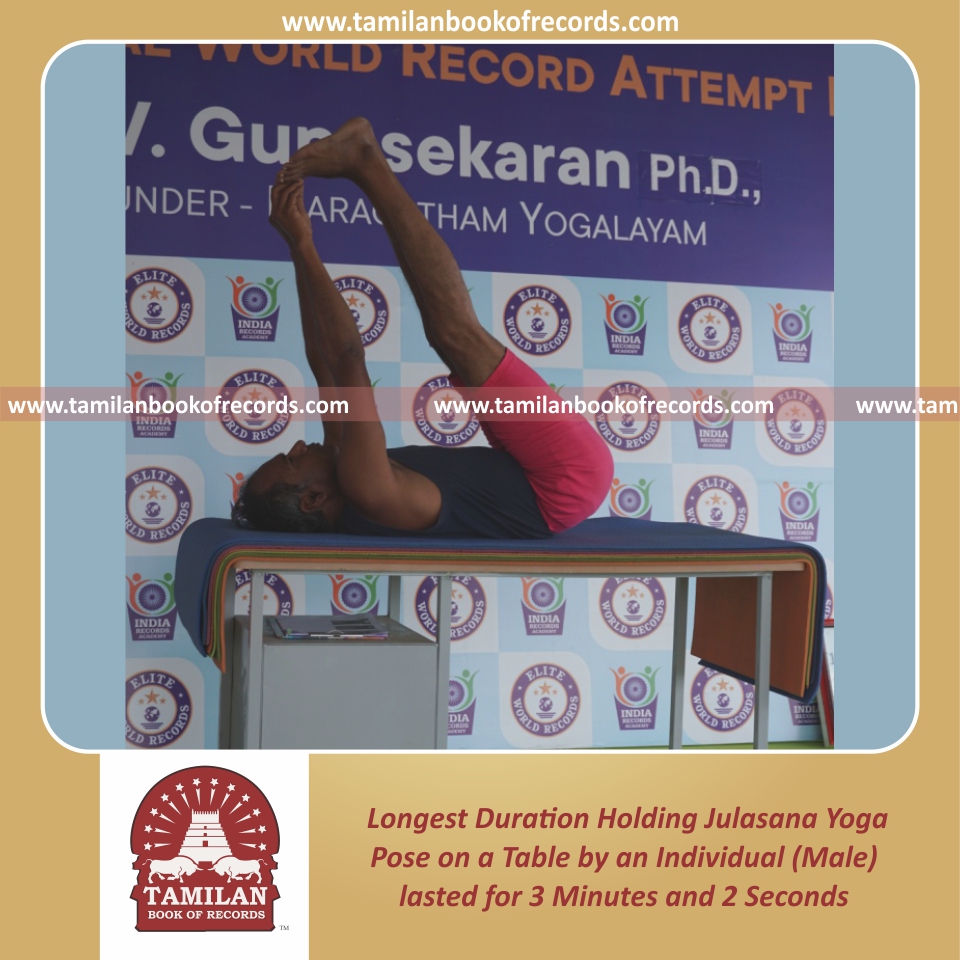 Longest Duration Holding Julasana Yoga Pose on a Table by an Individual (Male)
