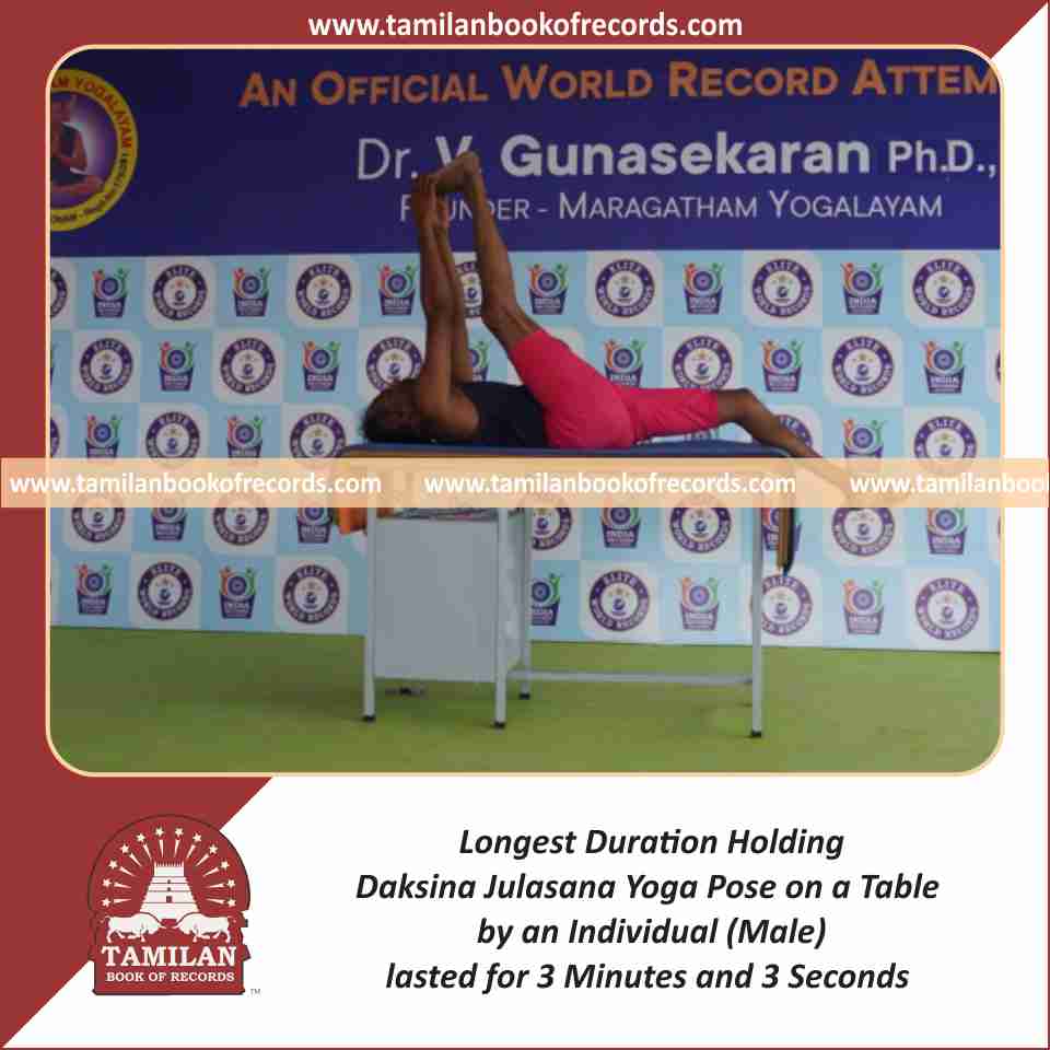 Longest Duration Holding Daksina Julasana Yoga Pose on a Table by an Individual (Male)