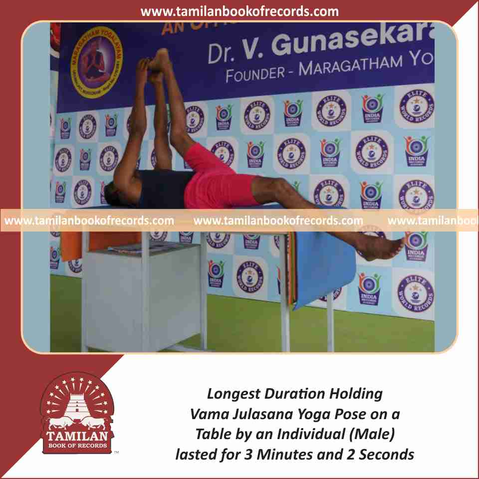Longest Duration Holding Vama Julasana Yoga Pose on a Table by an Individual (Male)