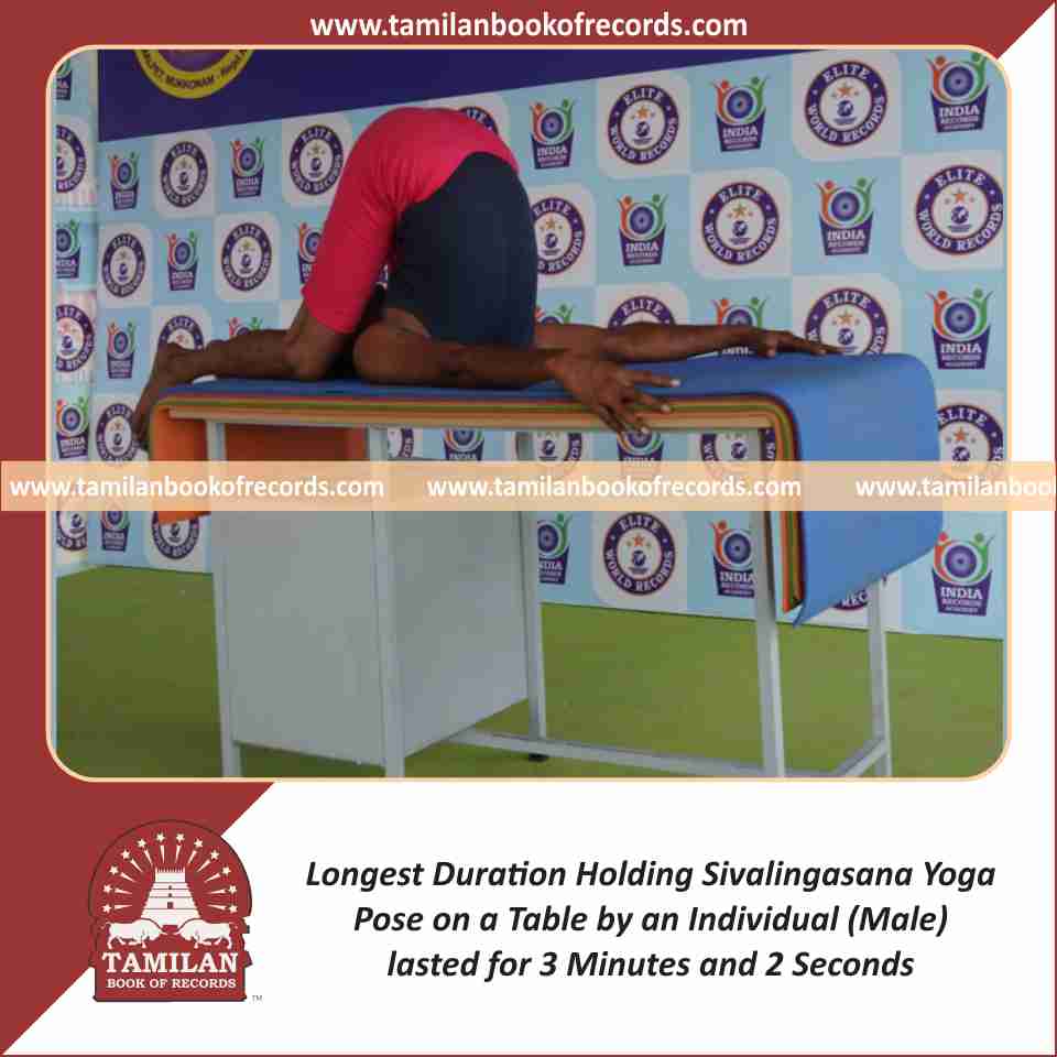 Longest Duration Holding Sivalingasana Yoga Pose on a Table by an Individual (Male)