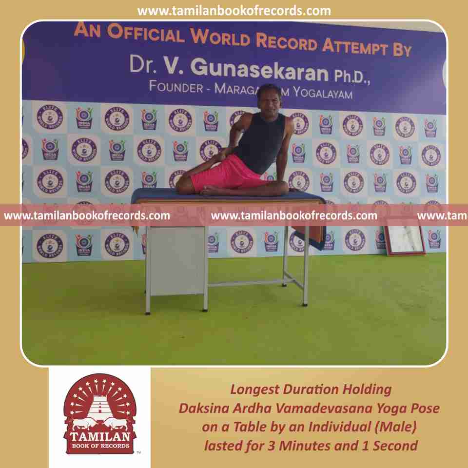 Longest Duration Holding Daksina Ardha Vamadevasana Yoga Pose on a Table by an Individual (Male)