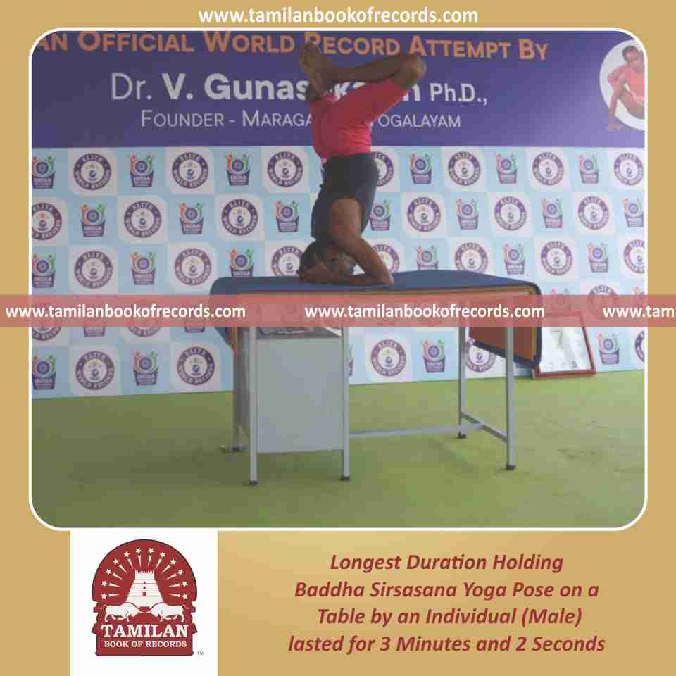 Longest Duration Holding Baddha Sirsasana Yoga Pose on a Table by an Individual (Male)