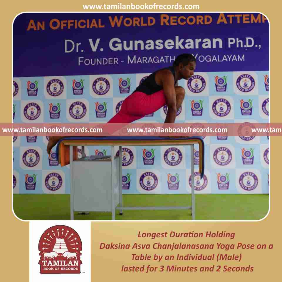 Longest Duration Holding Daksina Asva Chanjalanasana Yoga Pose on a Table by an Individual (Male)