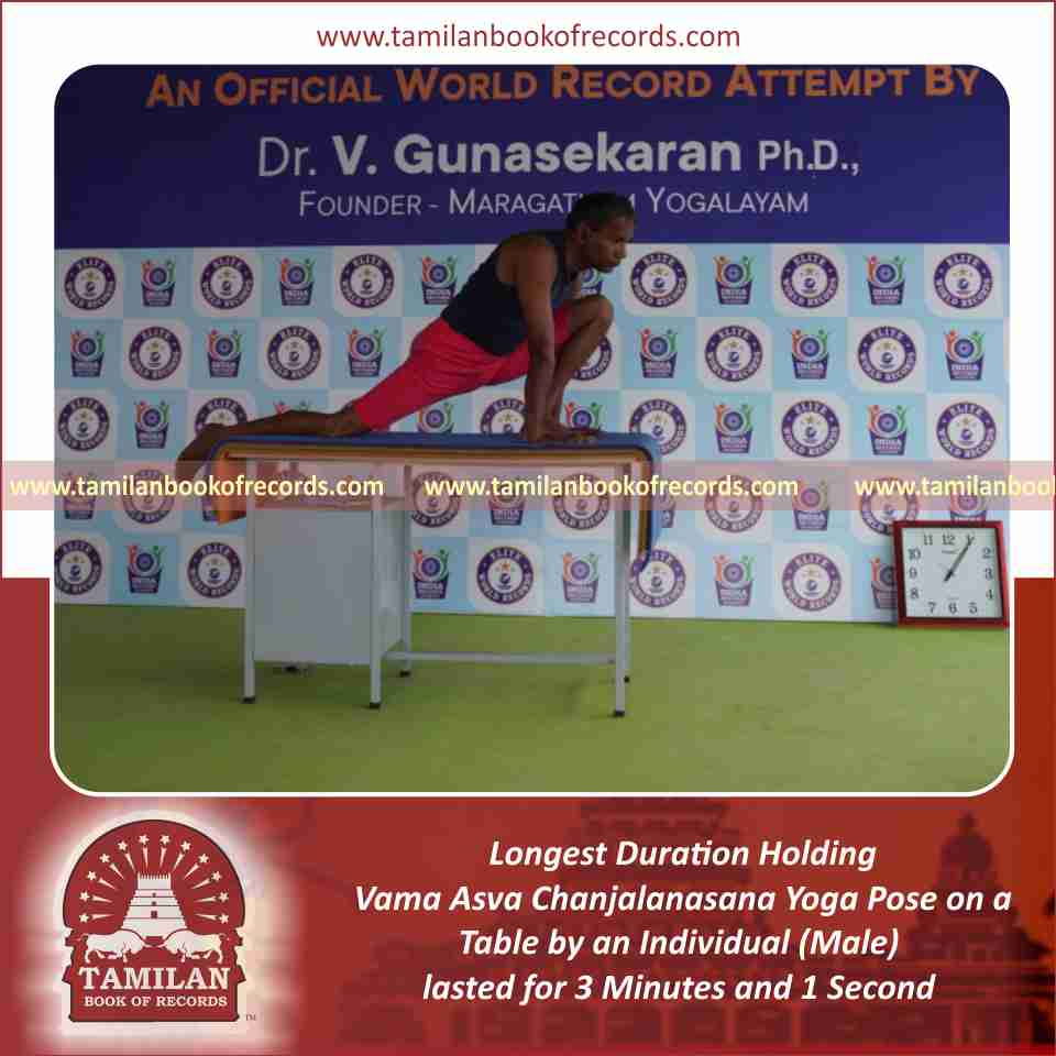 Longest Duration Holding Vama Asva Chanjalanasana Yoga Pose on a Table by an Individual (Male)