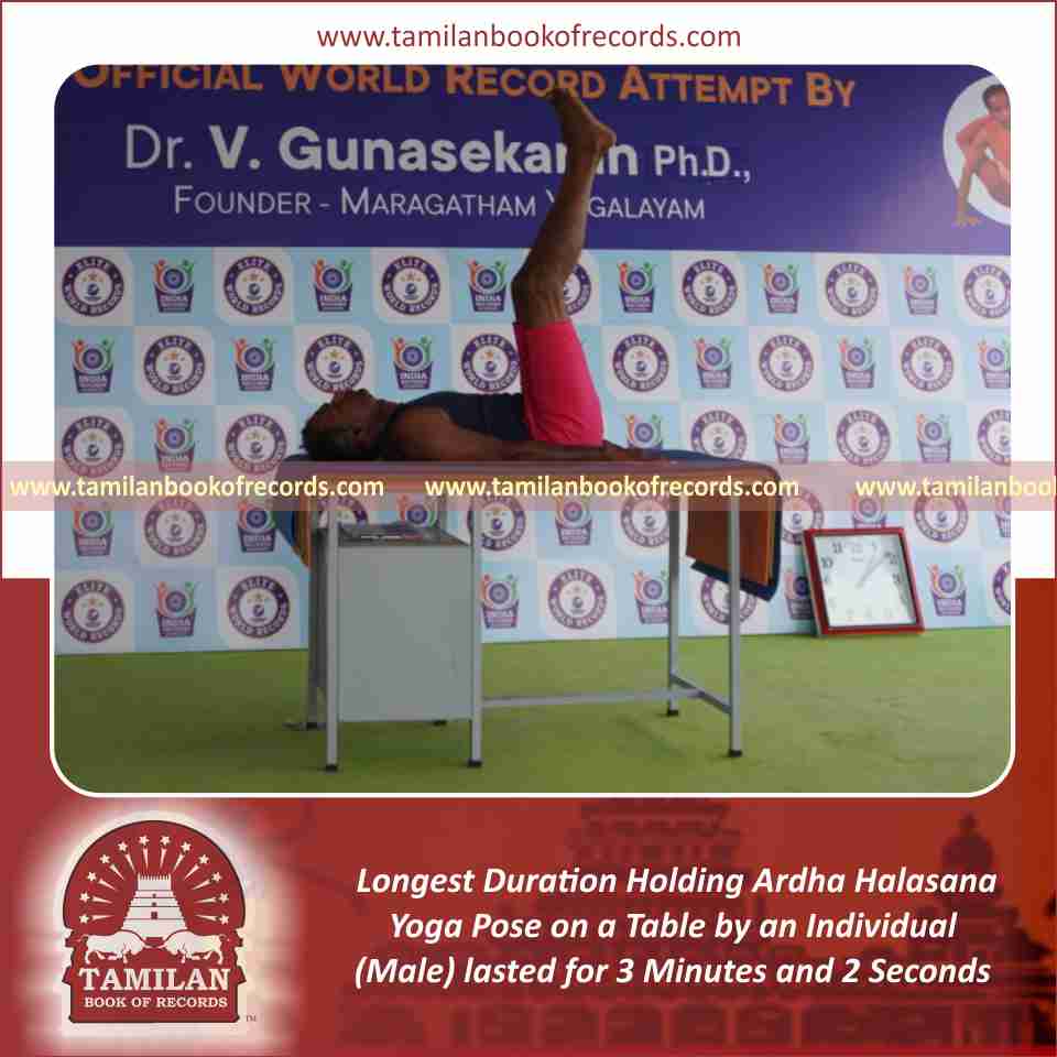 Longest Duration Holding Ardha Halasana Yoga Pose on a Table by an Individual (Male)