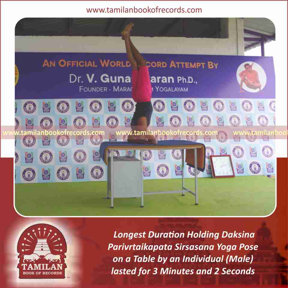 Longest Duration Holding Daksina Parivrtaikapata Sirsasana Yoga Pose on a Table by an Individual (Male)