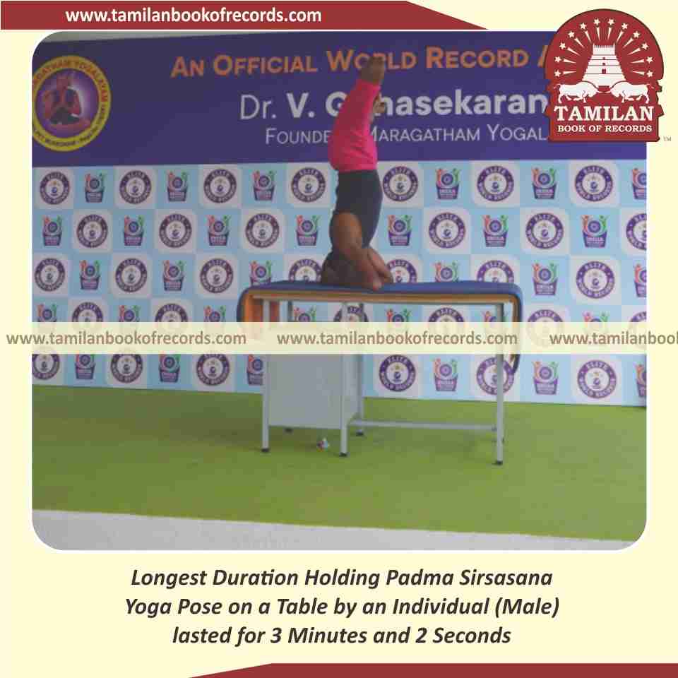 Longest Duration Holding Padma Sirsasana Yoga Pose on a Table by an Individual (Male)