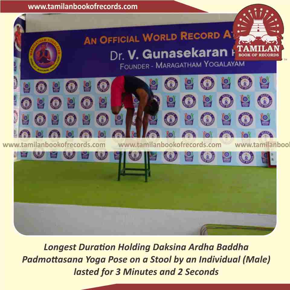 Longest Duration Holding Daksina Ardha Baddha Padmottasana Yoga Pose on a Stool by an Individual (Male)