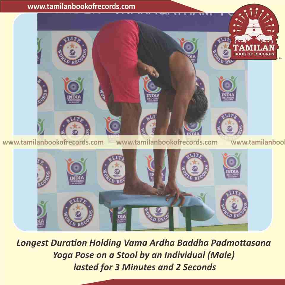 Longest Duration Holding Vama Ardha Baddha Padmottasana Yoga Pose on a Stool by an Individual (Male)